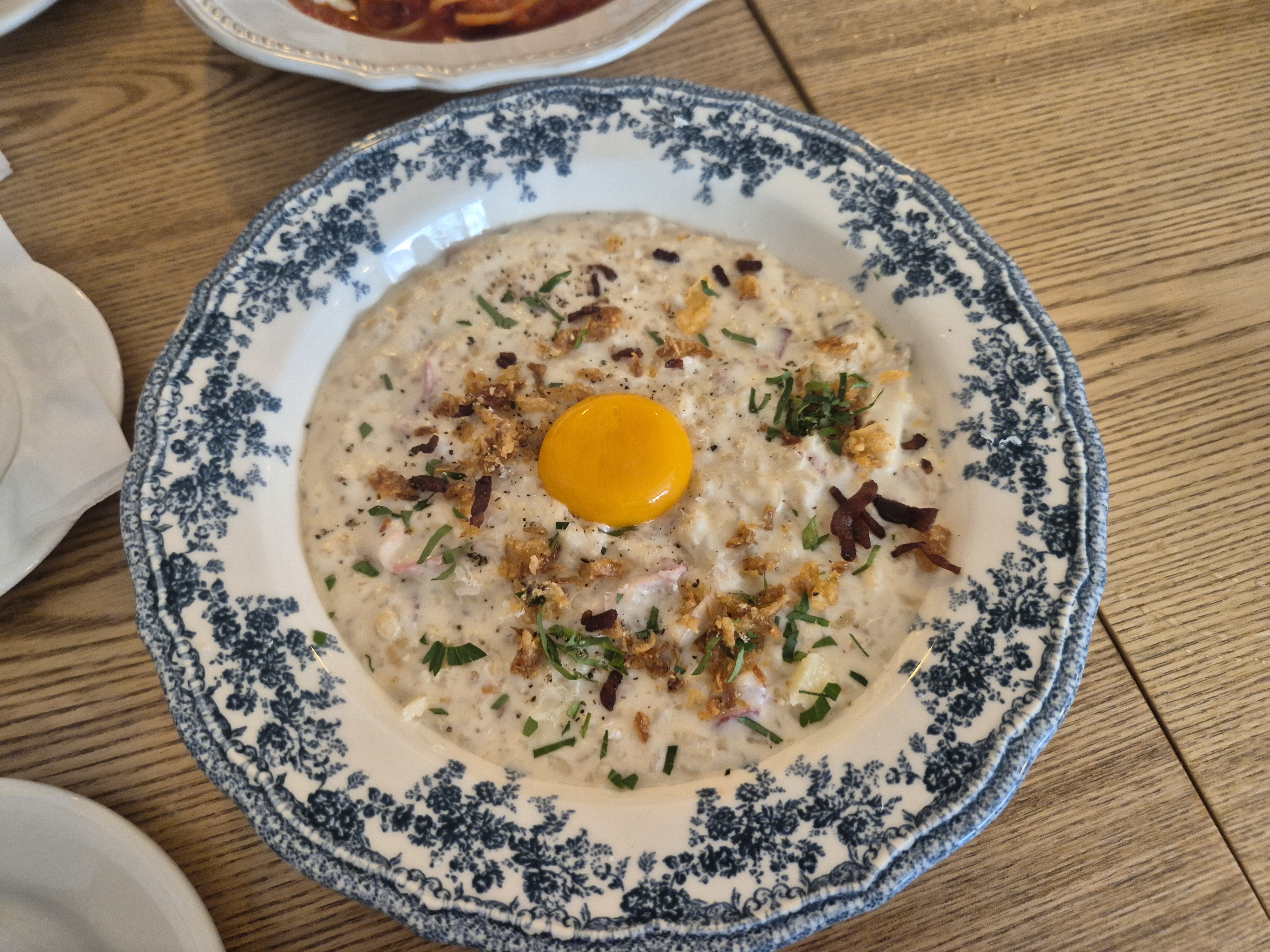 베이컨 크림 리조토 (19,000 + 1,000원) 를 주문하였다. 약간 스프랑 비슷한 느낌이긴 한데 훨씬 깊고 부드러운 맛이다.