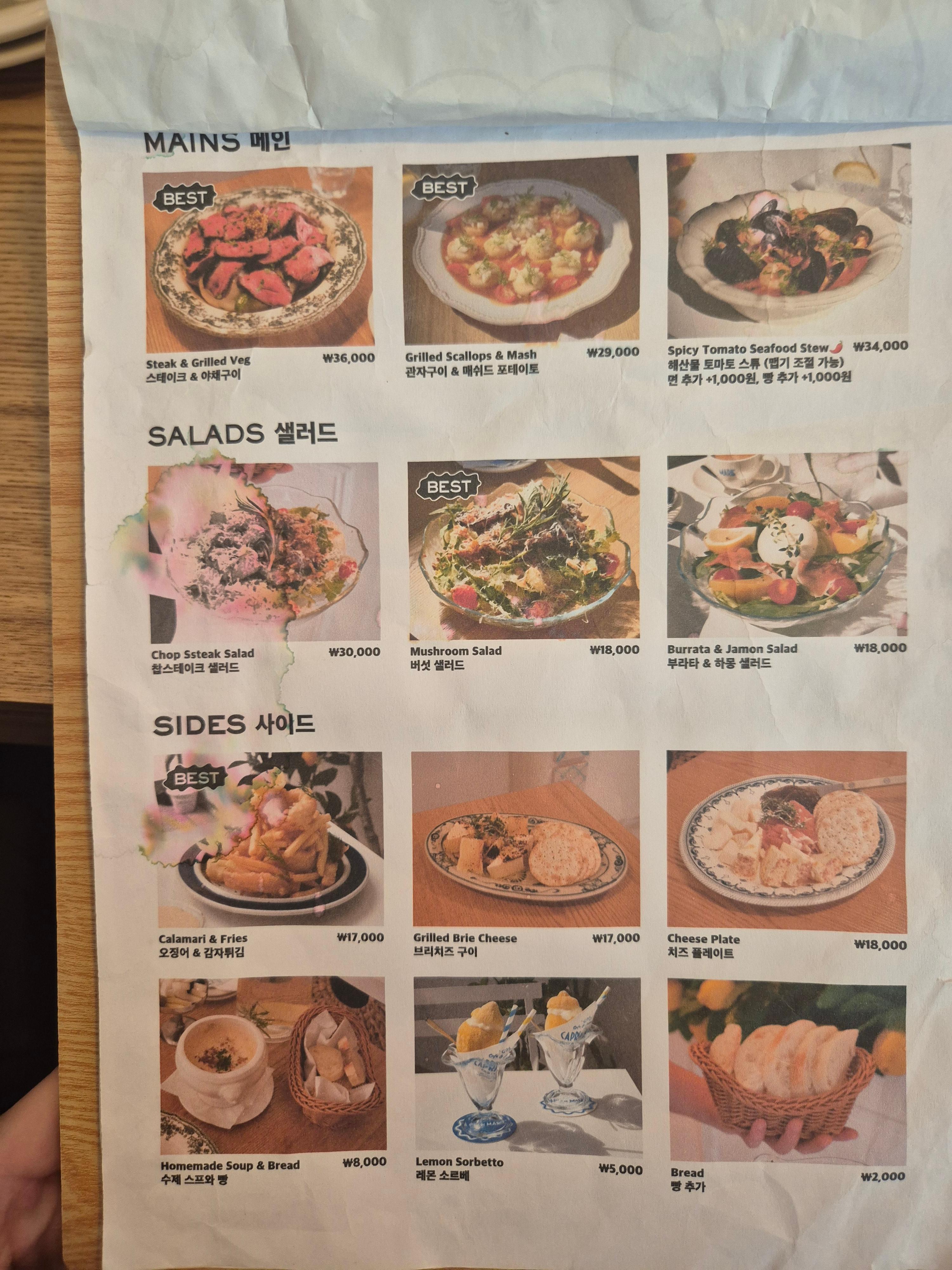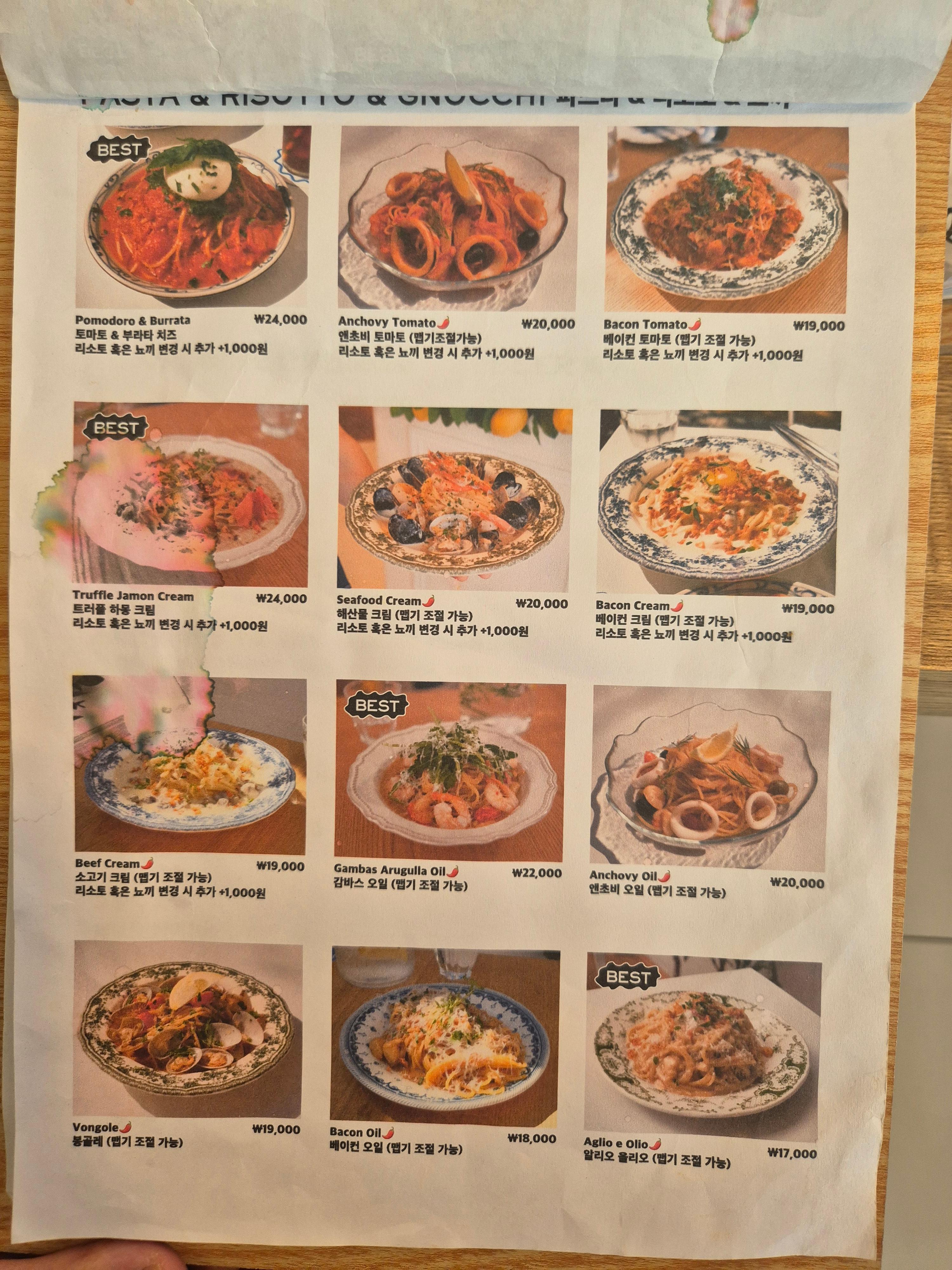 세월의 흔적을 탄 메뉴판..ㅎㅎ 확실히 핸드폰이나 패드로 보는 것보다 아직은 종이로 넘기면서 보는 메뉴판이 좋다. 종이 메뉴판보다 키오스크나 패드 메뉴판에 익숙한 친구들은 뭔가 더럽고 꼬질꼬질해 보이는 이런 메뉴판을 더 싫어하려나..ㅎㅎ