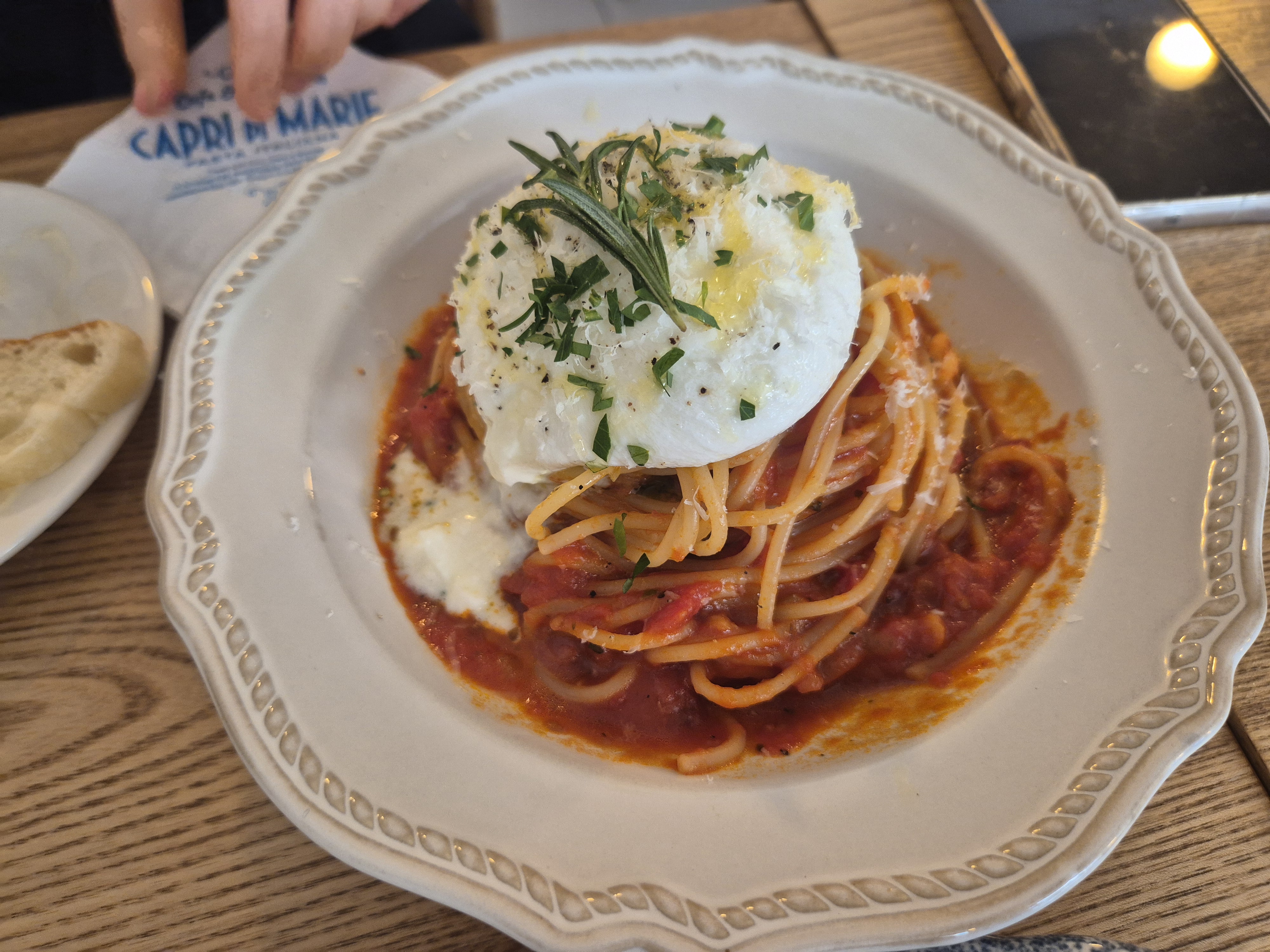 토마토&부라타 치즈 (24,000원)는 부라타 치즈를 터뜨려 잘 버무려 먹었다. 파스타면의 삶기 정도도 좋았고 맛도 괜찮더라.