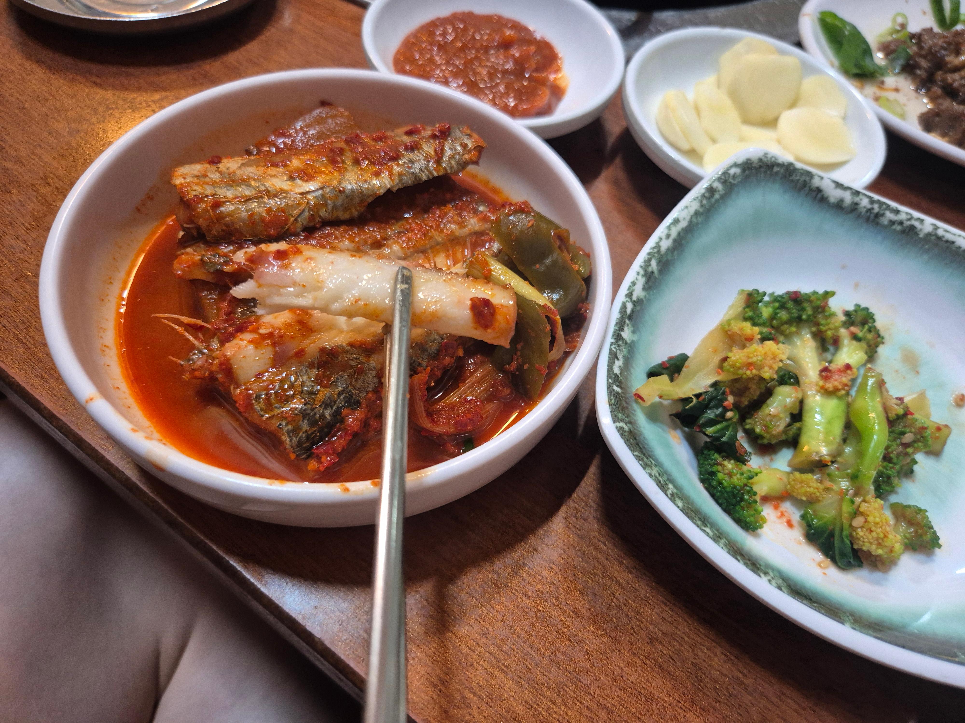 통갈치살과 너무 잘 익은 무의 조합이 좋긴했다. 그래도.. 생선 특유의 맛이 나긴 해서 많이 먹지는 못하겠더라..ㅋㅋㅋㅋ