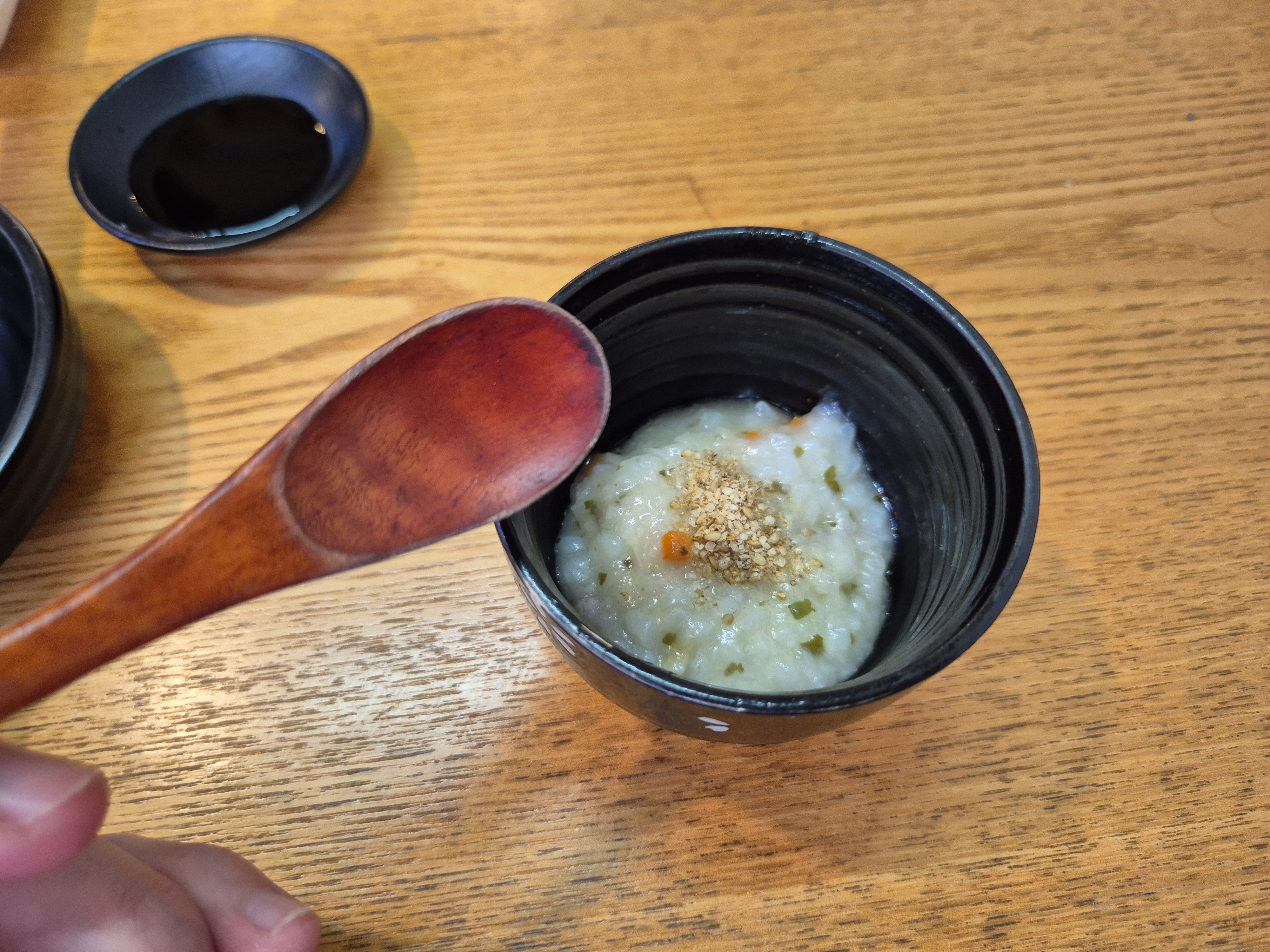 깜빡하고 메뉴판을 찍지 못했는데 스페셜초밥(29,000원)으로 주문했다. 애피타이저로 나온 죽!!