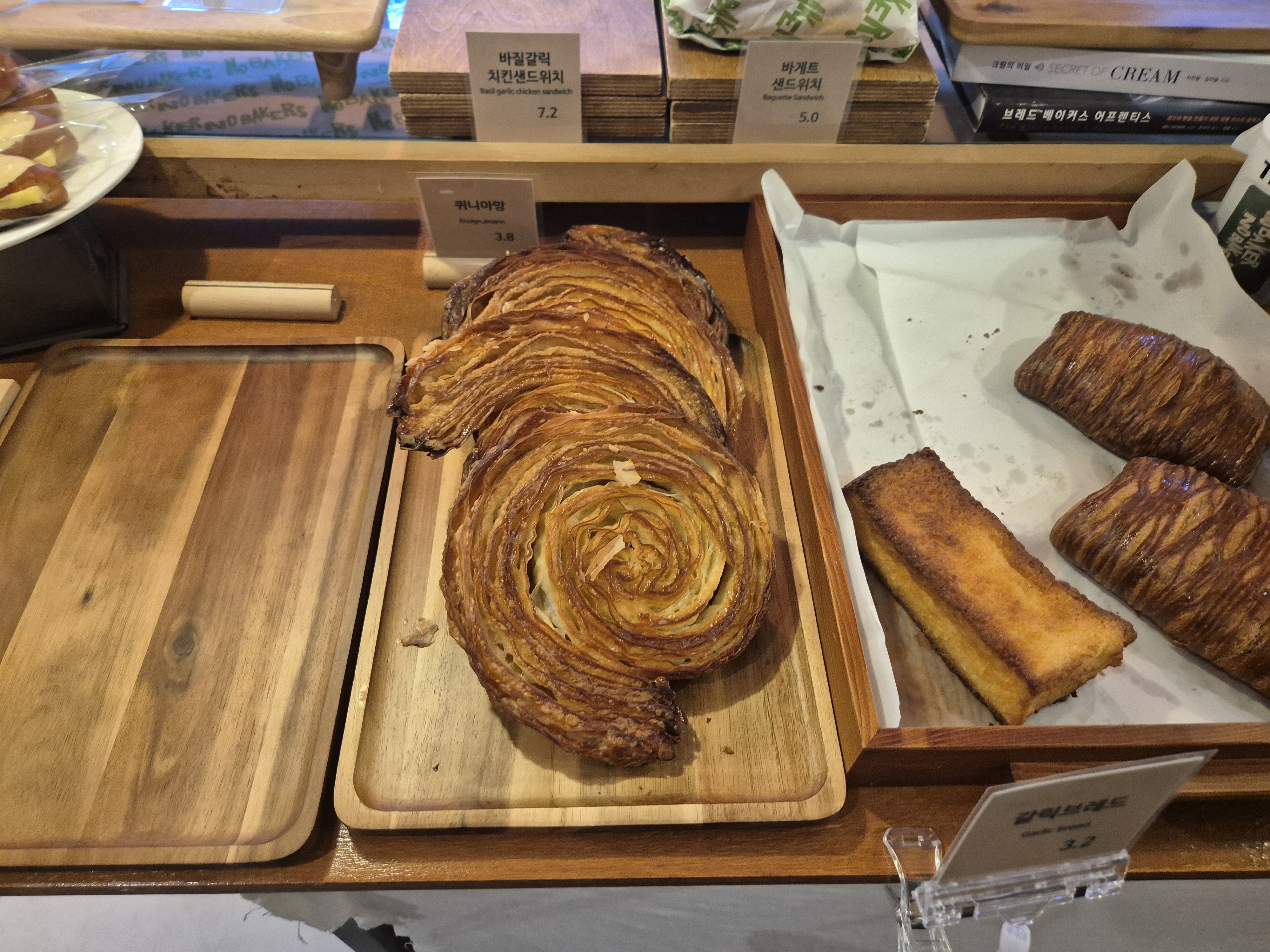 늦은 시간이라 빵들이 많이 소진되었다. 우리는 퀴니아망(3,800원) 하나와..