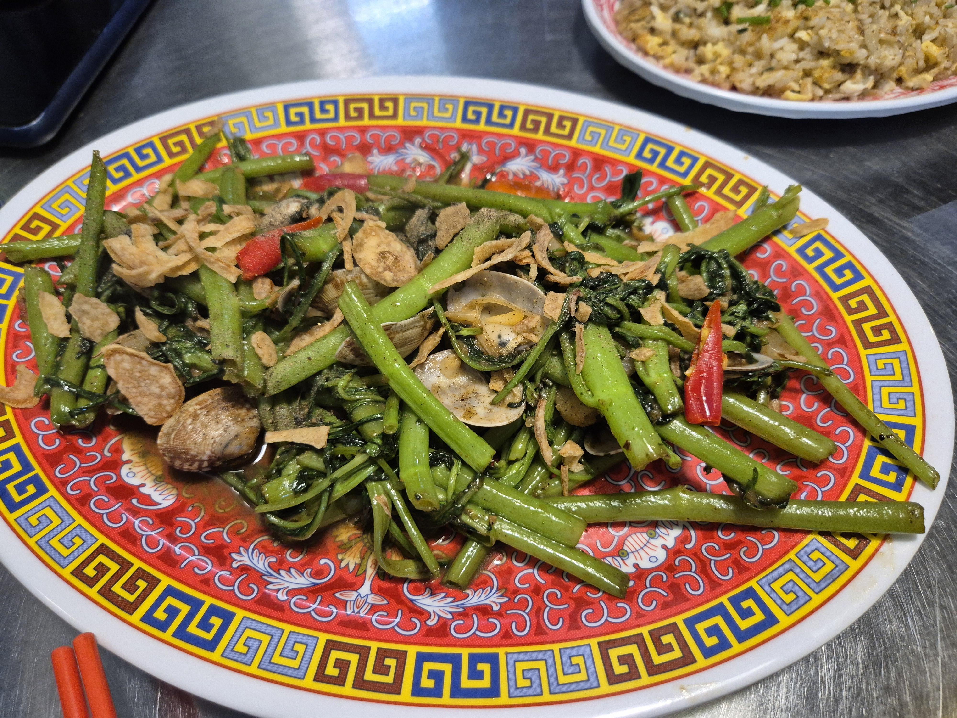 요리 메뉴로 주문한 바지락 공심채 볶음 (13,000원)!! 간이 살짝 센 부분도 있었지만 묘하게 매력적인 맛이었다. 가격 생각하면 가성비도 꽤나 좋은 것 같지만 양이 그렇게 많은 건 아니다.
