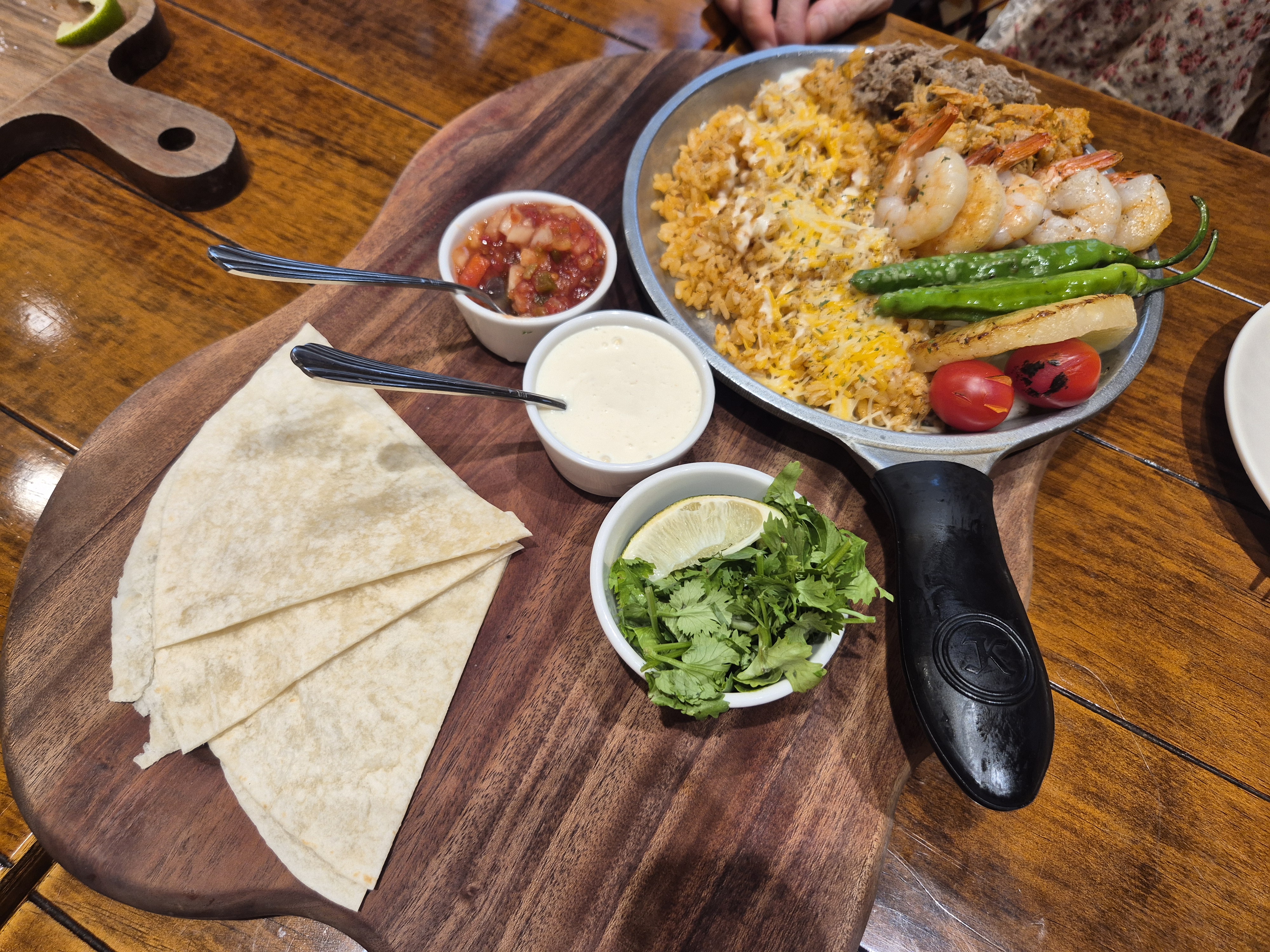 그리고 불닭엔칠라다(25,000원)+ 새우 4개 추가(4,000원)!! 먹다보니 또띠아(1,000원)와 과카몰리(1,000원)가 아쉬워 같이 추가하였다. 파히타야 너무 맛있었고..ㅎㅎ