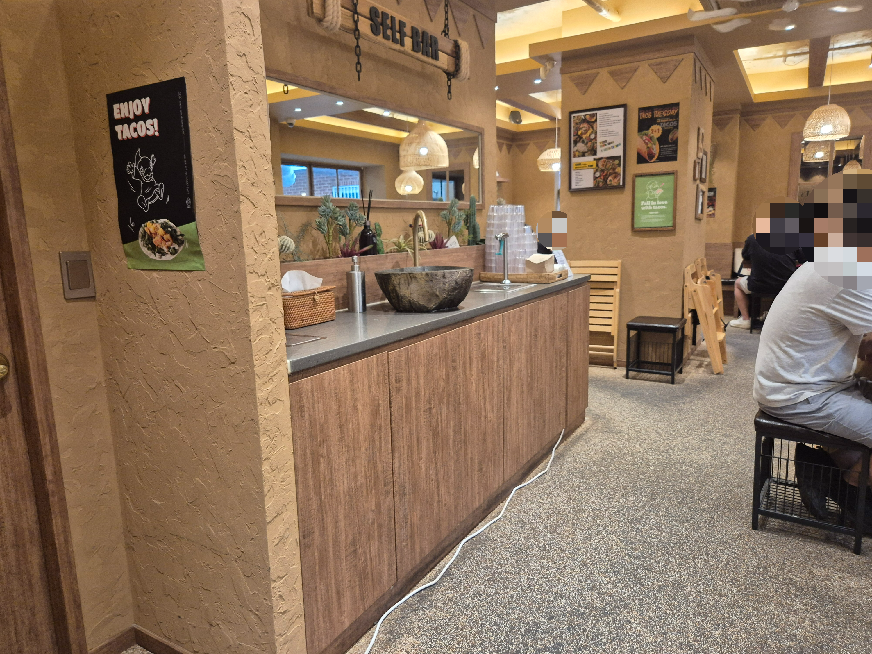 셀프 바에는 물과 손 씻을 수 있는 공간이 마련되어 있다.