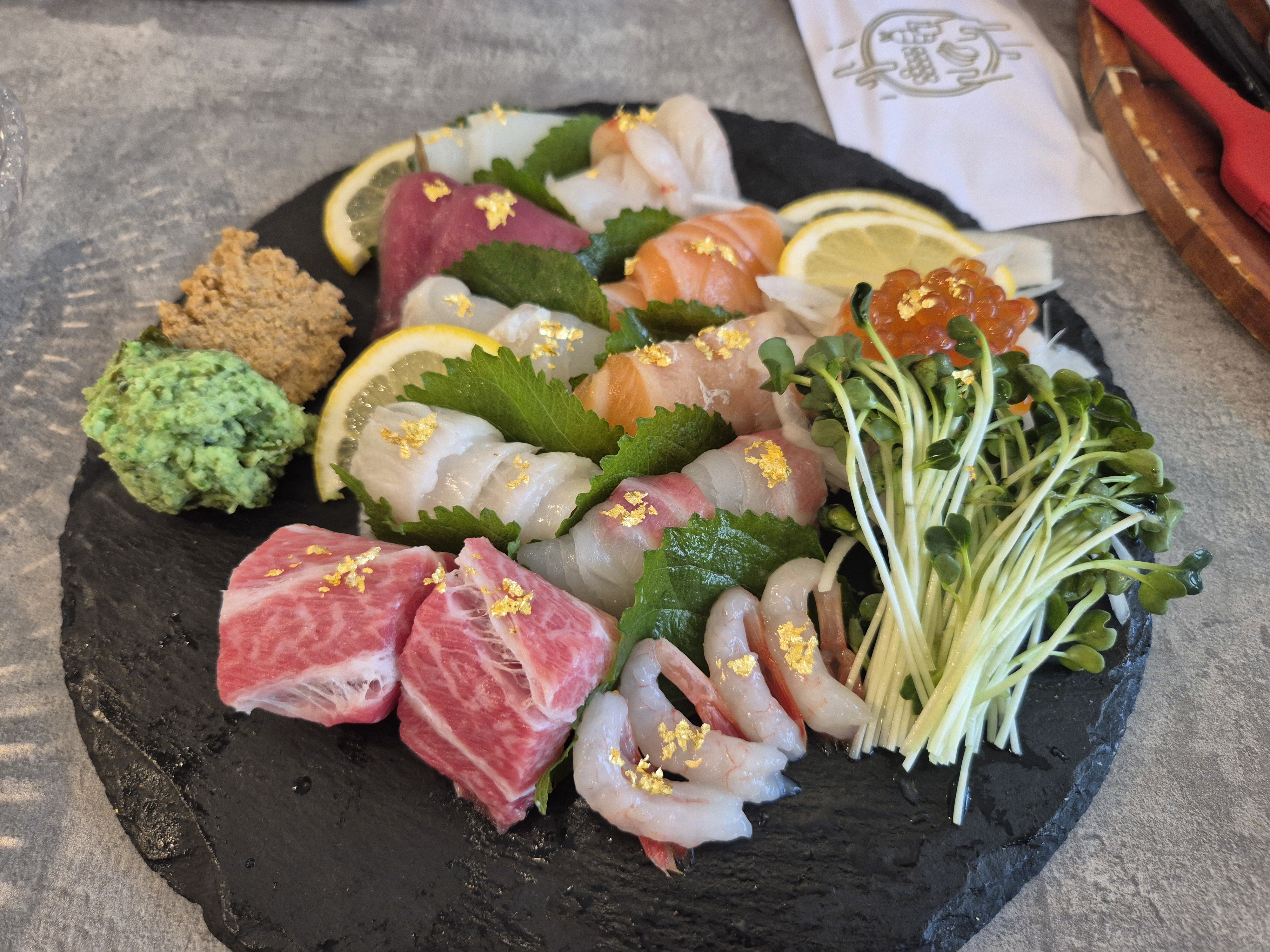 드디어 스시가 나왔다..!! 적당히 고급스러운 부위에 아귀 간까지..! 아 저기 해산물이 함께 첨가된 와사비가 묘하게 맛있더라.