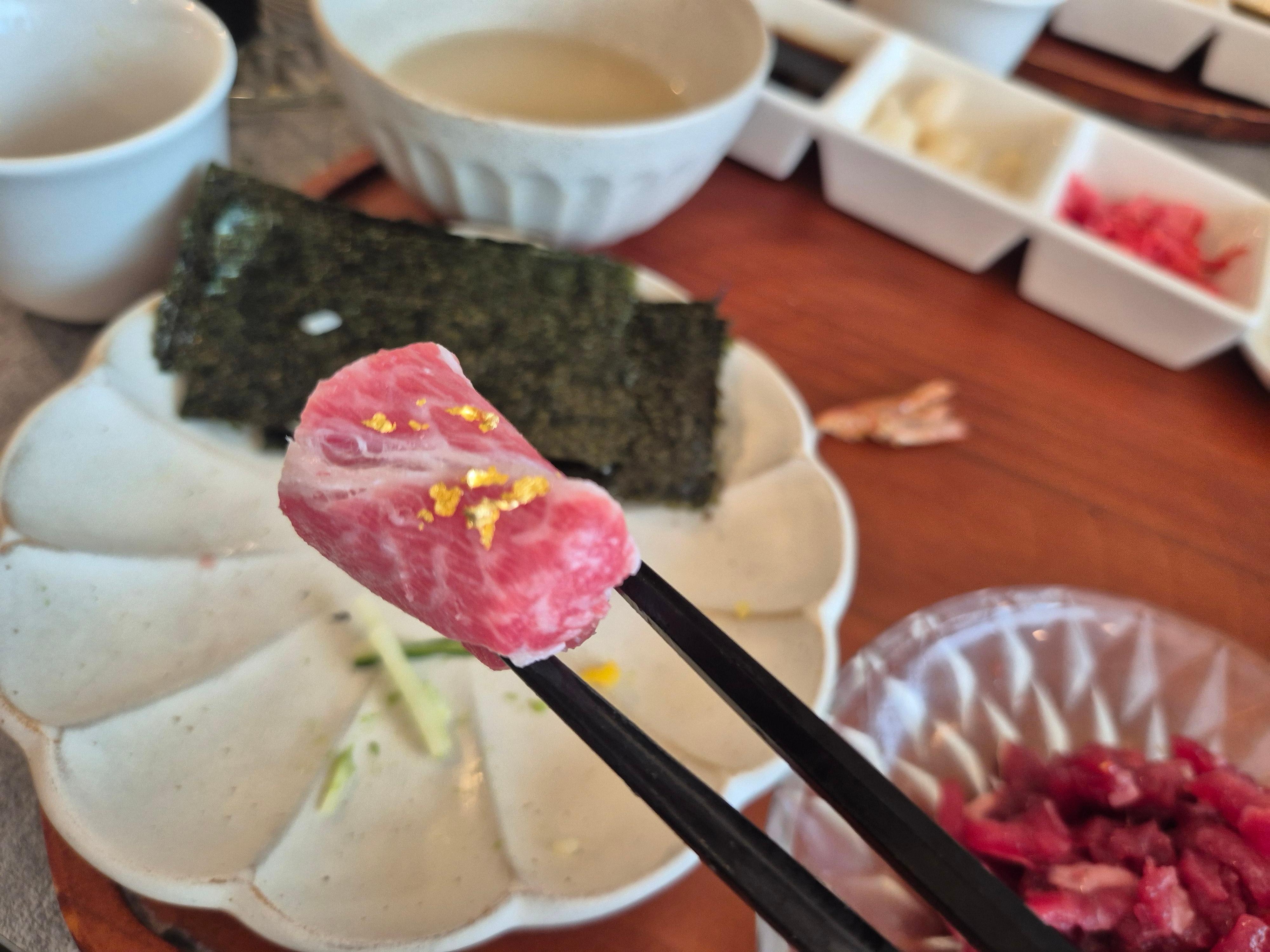 S급 혼마구로 뱃살..!!! 역시 가장 비싼 녀석이 가장 맛있긴 하더라..ㅋㅋㅋ 광어 지느러미도 맛있었다. 계속 비싼 녀석들만 먹어서 그런지 연어나 참치 아카미 같은 거는 물려버리더군..ㅋㅋㅋ