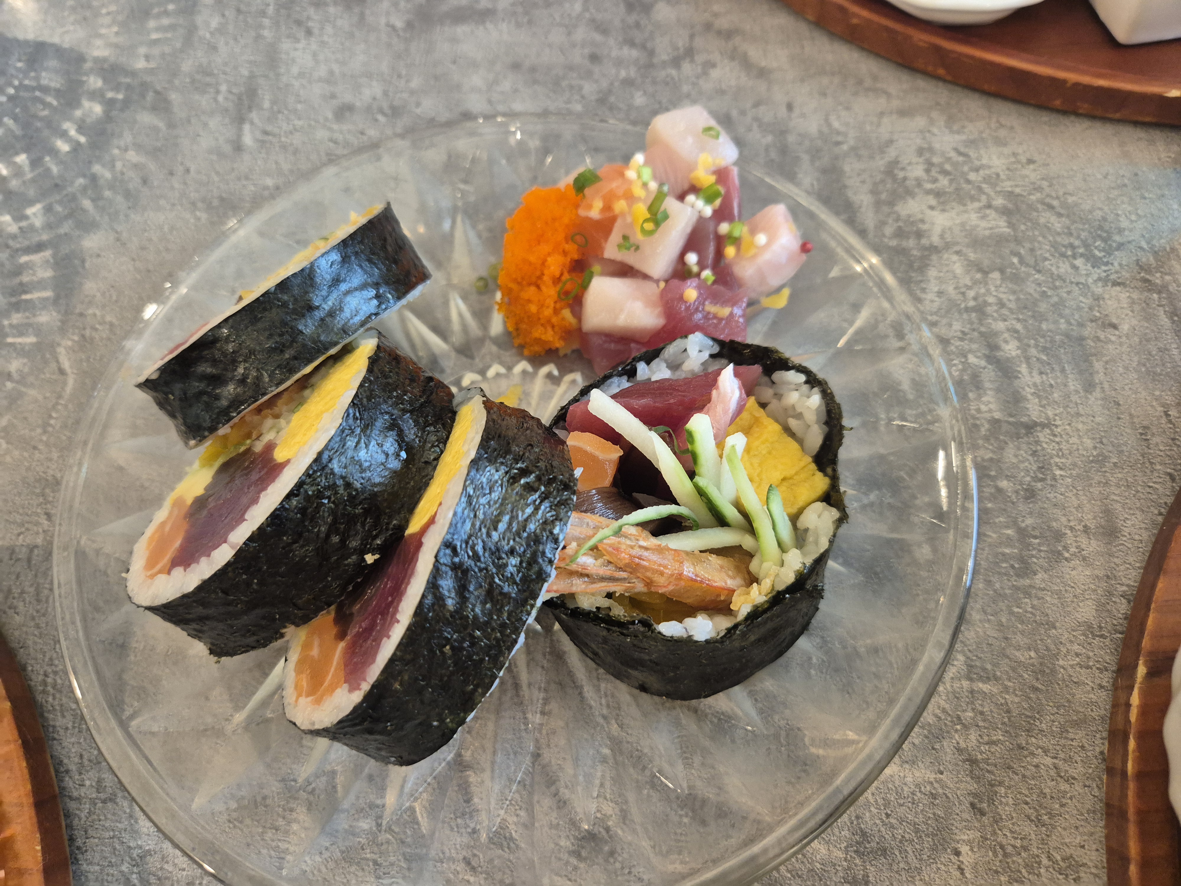 아 그런데 욕심을 부려버렸다... 그란도 후토마키 4 pc(16,900원)도 주문했다..ㅠㅠㅠ 조합은 좋았는데 흠 너무 배가 불렀다고나 할까..ㅠㅠㅠ 사실 참치보다는 새우튀김과 타마고가 맛있더라..ㅋㅋㅋ