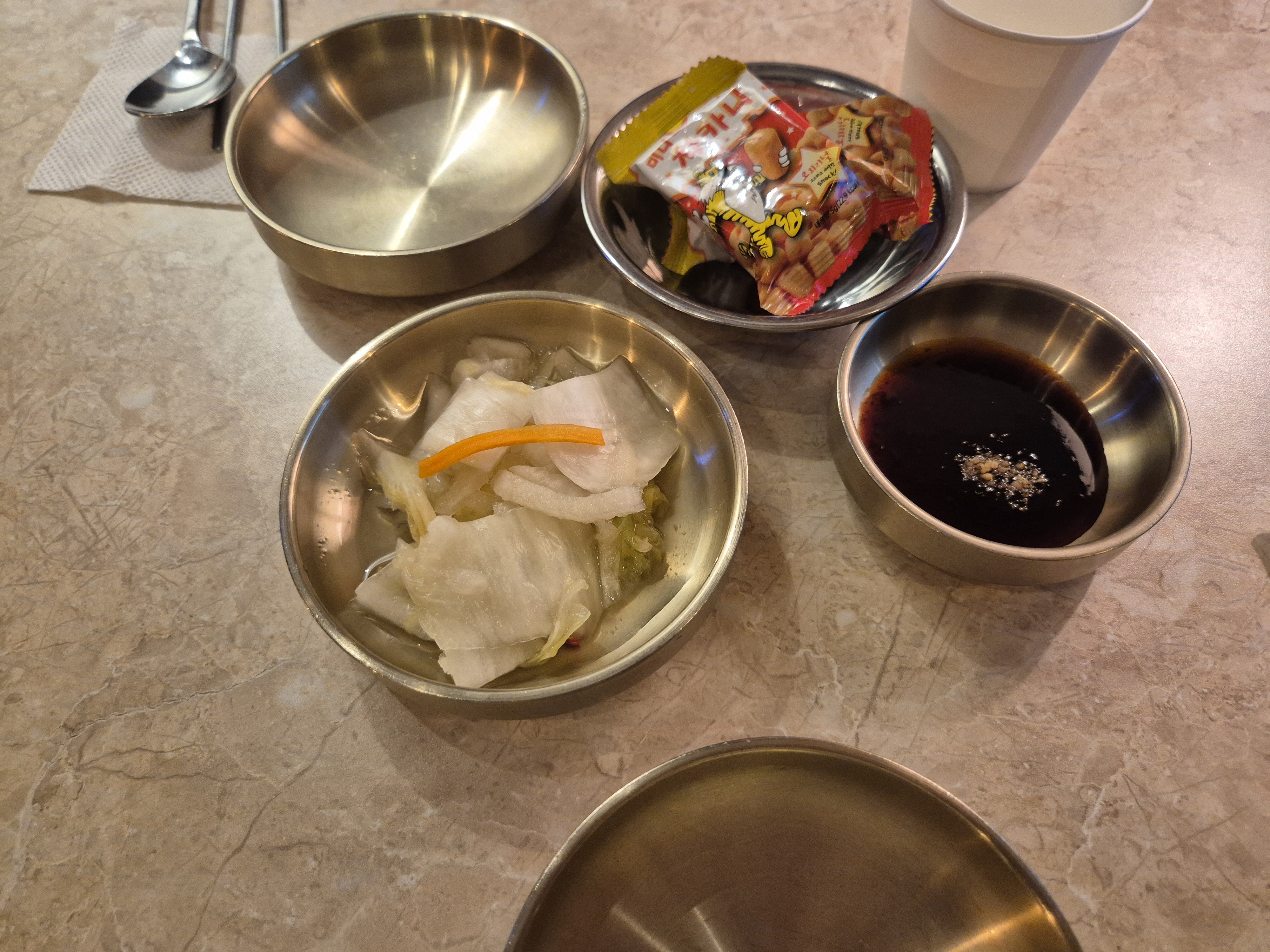 약간 모양이 그렇긴 하지만 맛은 괜찮았다. 무생채가 맛있어 보이는데 의외로 좀.. 맛도 밍밍하고 살짝 쉰 느낌이라 내 스타일은 아니더라. 간장이나 불닭소스에 찍어먹으면 간이 맞다.