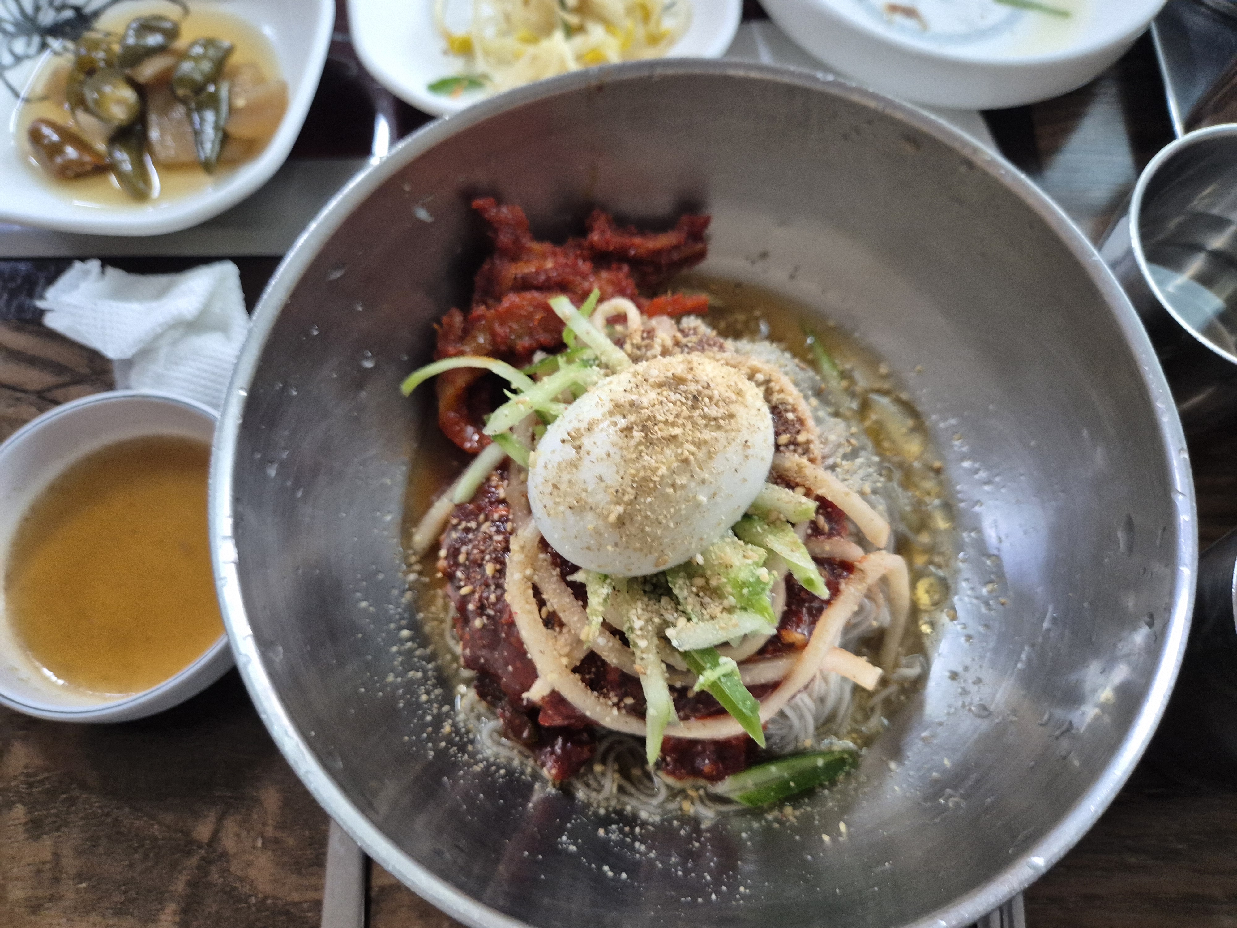 철박사가 물냉면(10,000원)을 주문하였다. 다들 새로운 주문 방식에 놀란 모습이었다. 육수만 한번 먹어봤는데.. 묘하게 한약맛이 강한 물냉면이었다... 흠... 뭔가 호불호가 있을 것 같은 느낌이다.