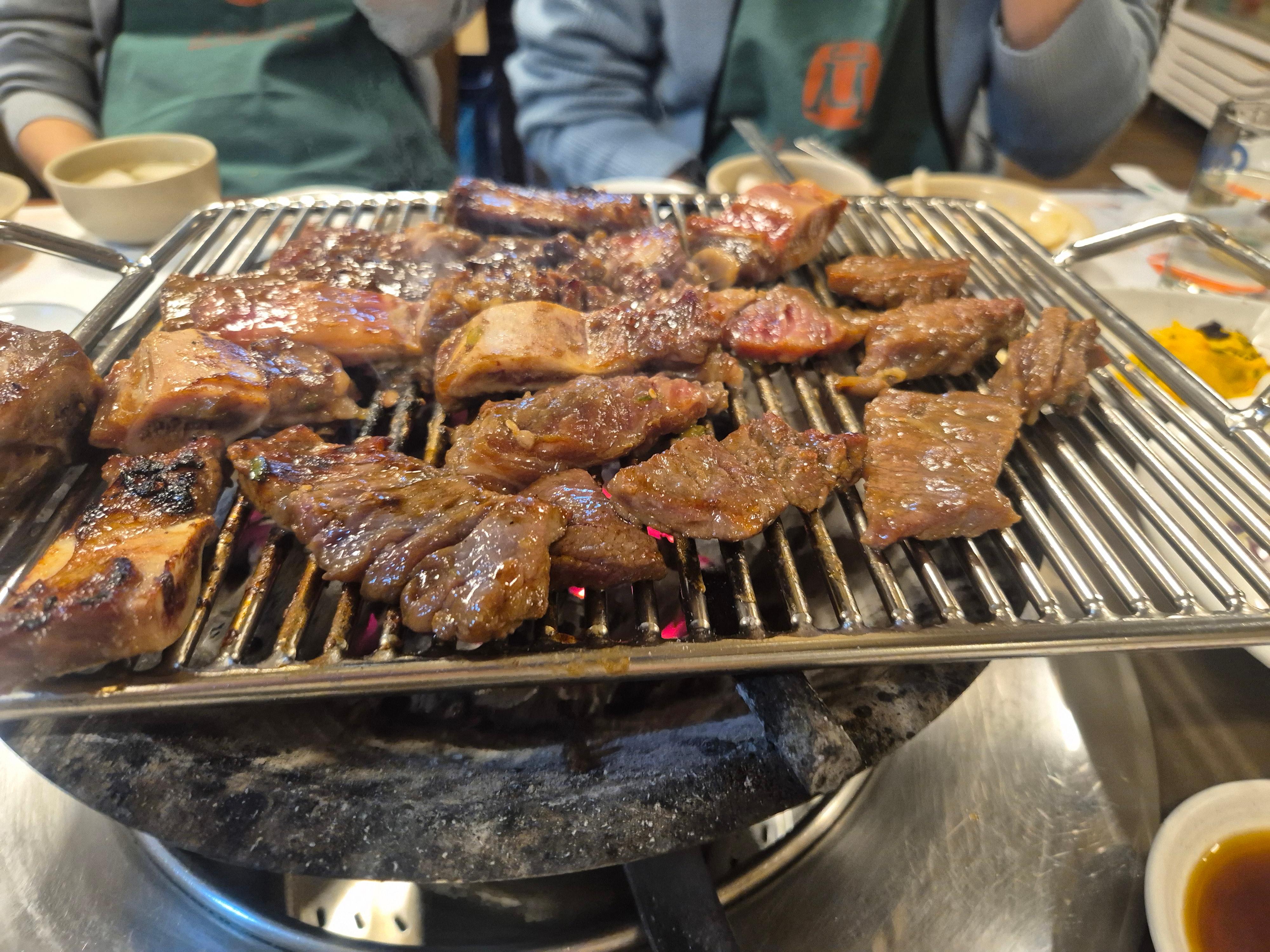 한 입 먹어봤다. 확실히 어제 북악정을 다녀와서 인지 맛의 차이가 확실히 나더라. 둘 다 고기맛은 너무 좋았는데 여기가 조금 더 우리가 알고 있는 일반적인 느낌의 양념갈비 맛이었다. 적절하게 달고 짠..ㅋㅋ 우열을 가리긴 힘들었지만 많은 사람들이 편안하게 맛있다고 할 곳은 여기인 것 같다는 게 중론이었다..ㅎㅎ