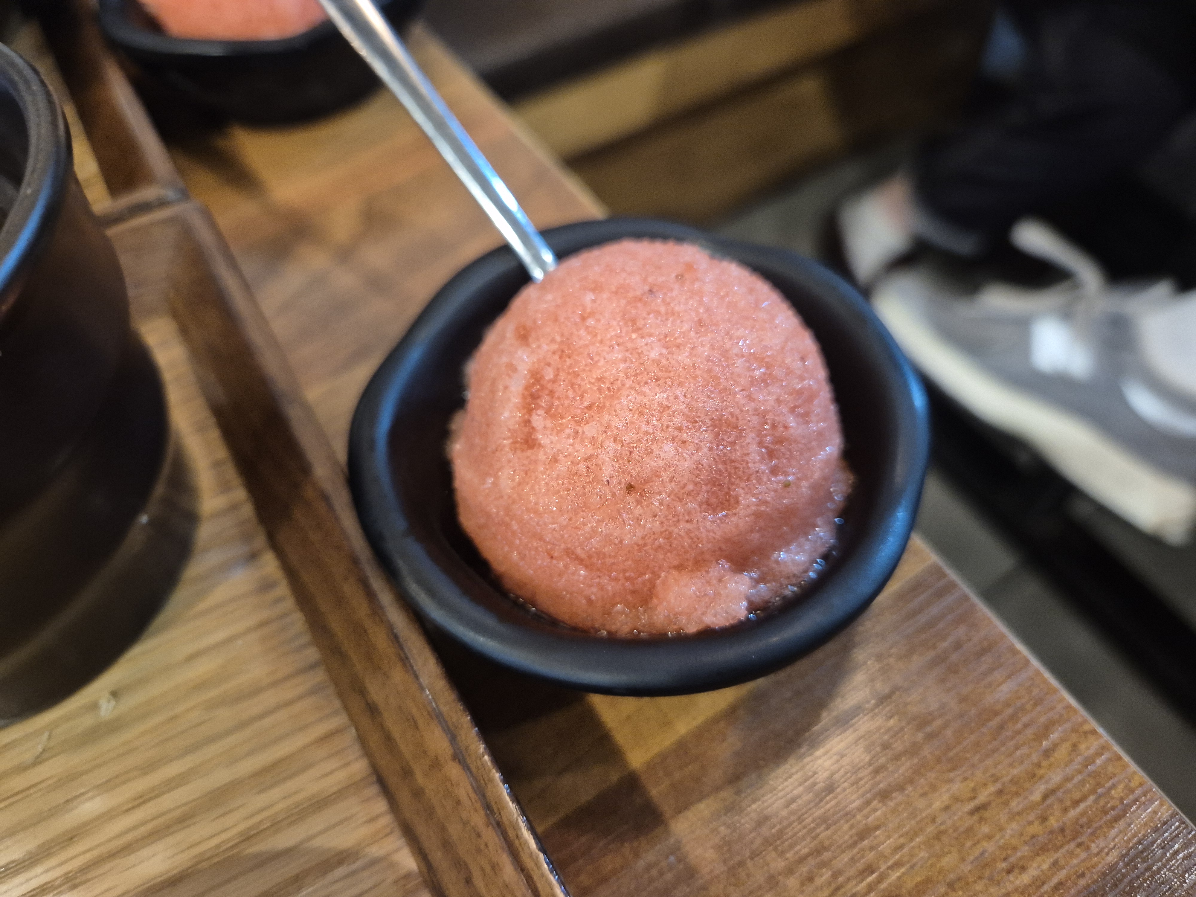 일단 모둠카츠(16,000원)로 주문했다. 보니까 한정수량 특로스카츠도 남았던 것 같은데 저걸 먹어볼걸 싶긴 했다. 익힘 정도는 훌륭하다. 살짝 느끼한 순간이 오면 파김치나 와사비 같이 적절한 곁들임들이 있어서 물리지 않게 먹을 수 있었다.