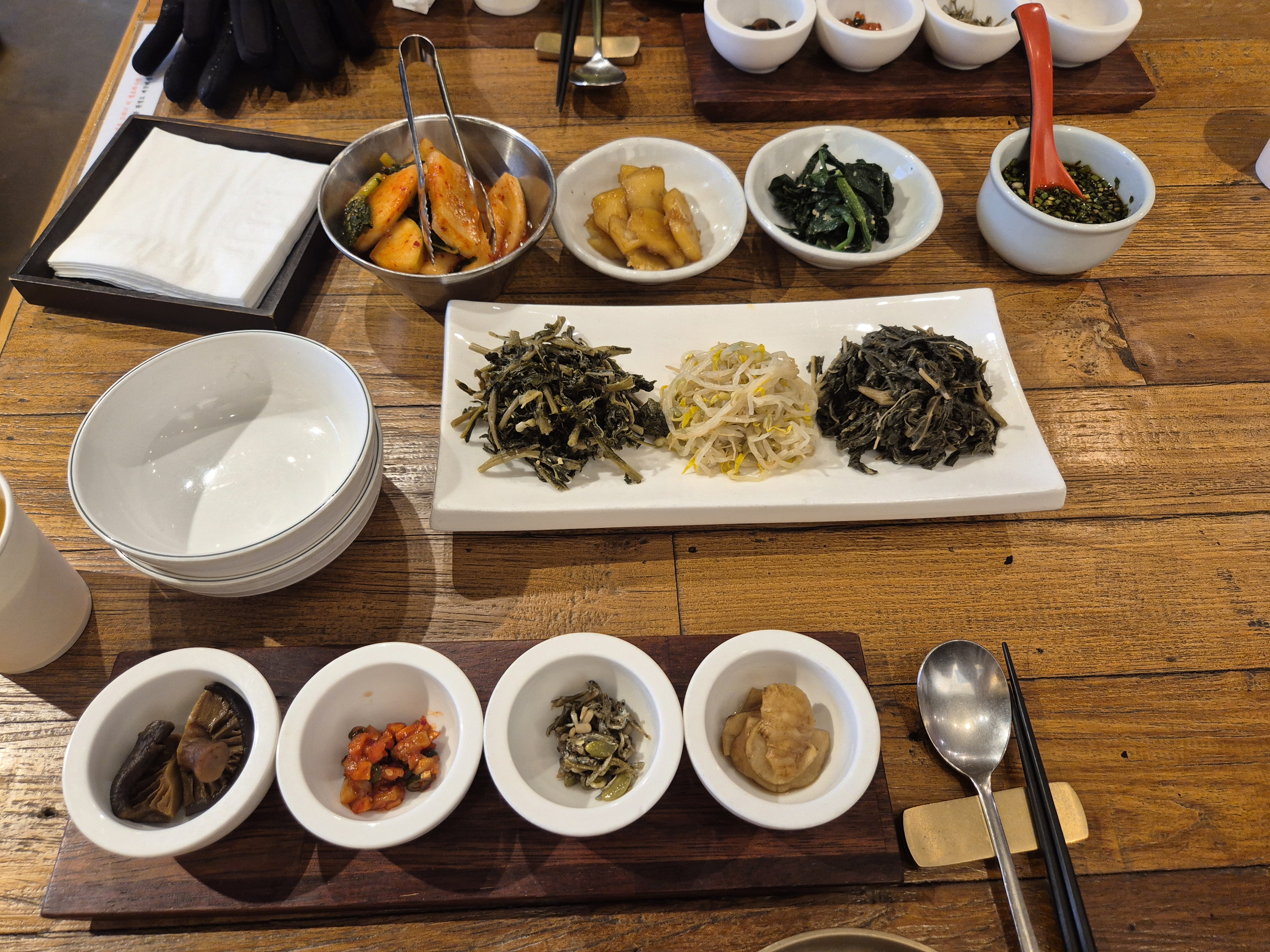 미리 주문을 해두셨단다.. 일단 기본 밑반찬들..!! 나물위주인데 나물도 맛있었고 개인 밑반찬들도 다 간도 적당하니 괜찮더라.