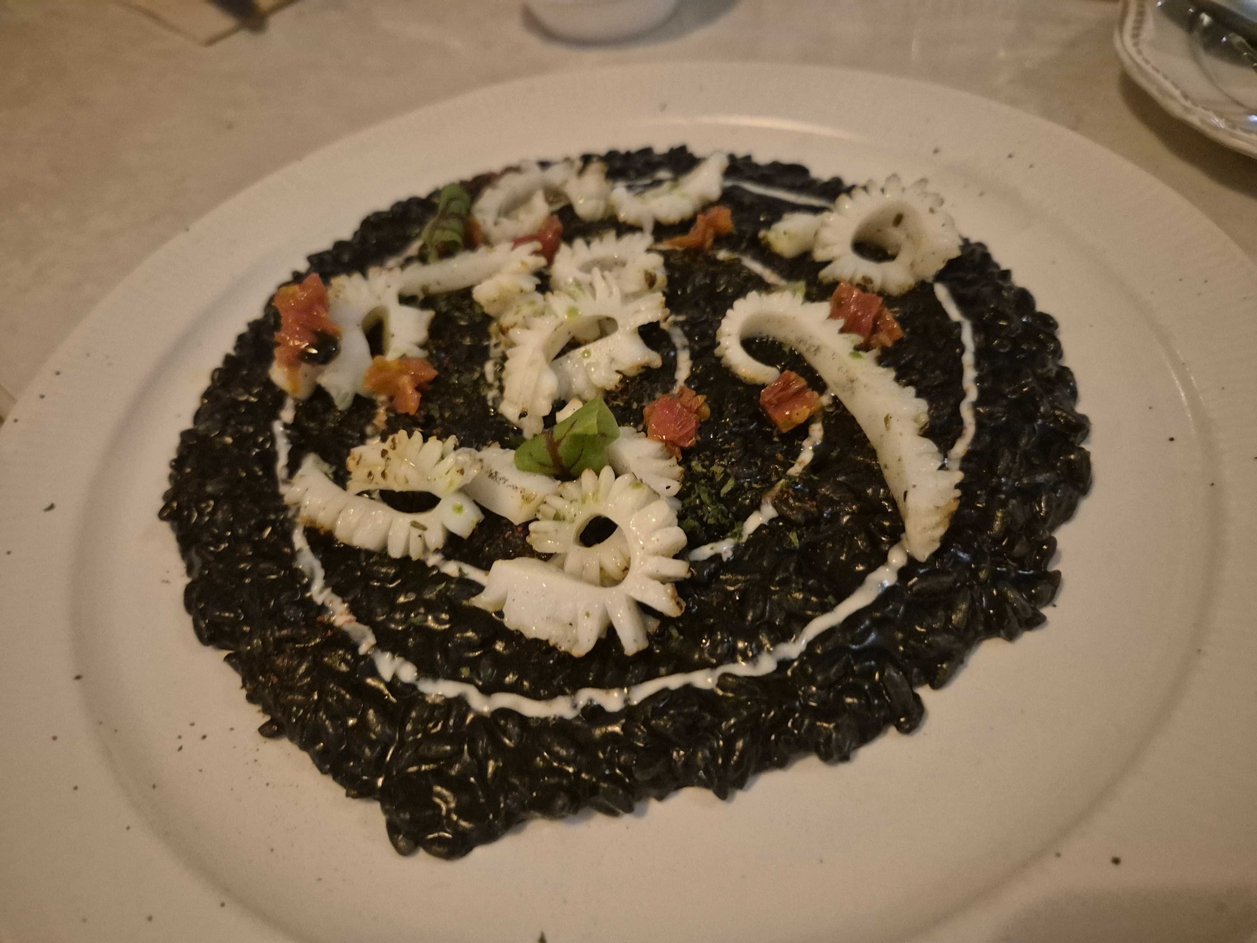 갑오징어 먹물리조또(25,000원)를 누군가 골라서 먹어보았다. 오징어 특유의 맛이 강하지 않아서 괜찮았다.