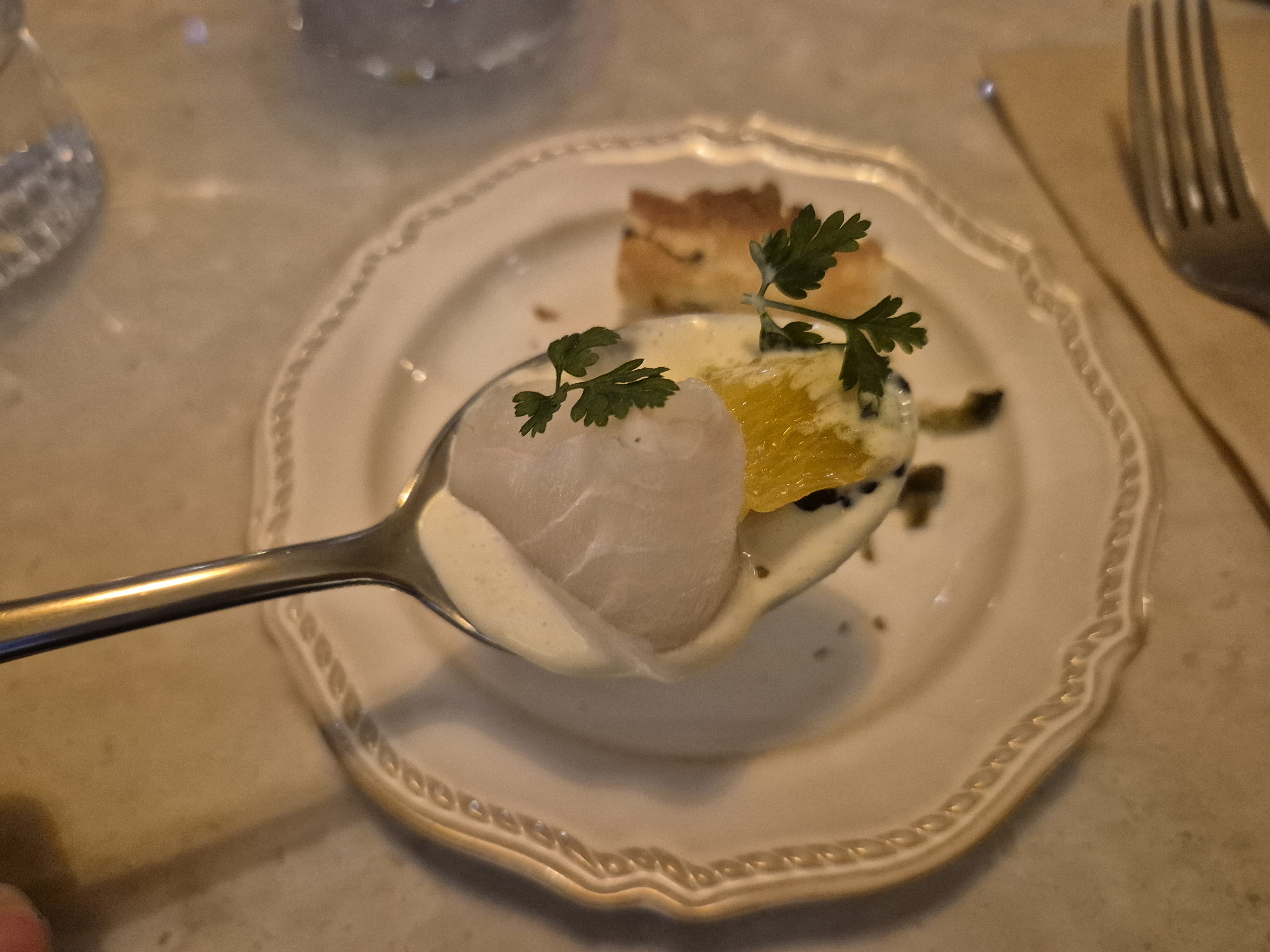 자몽과 광어 그리고 크림소스의 조화가 좋더라. 이런 게 바로 파인 다이닝의 맛일까..ㅋㅋㅋ