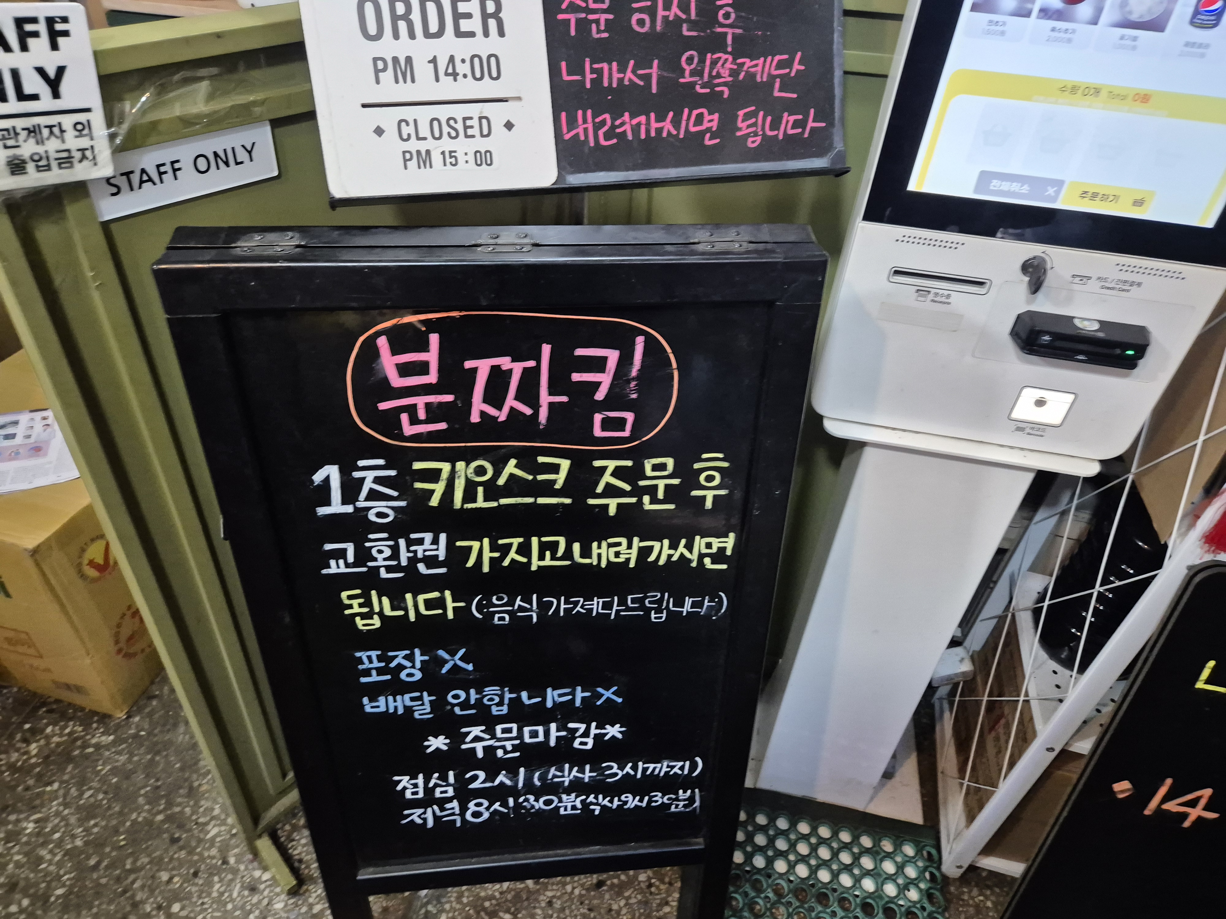 주문 후 교환권을 가지고 내려가면 된다는군..!!! 여기 식사 시간이 빡세다. 점심은 2시까지는 와야 하고 저녁은 8시 30분이 마감이다. 브레이크 타임도 긴 편인 것 같고 토요일은 점심 영업만 했던 걸로 기억한다.